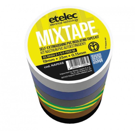Kit Nastri Isolanti 6 Colori 19x25mm PVC Autoestinguente ( ETELEC cod. NAMIX6 )
