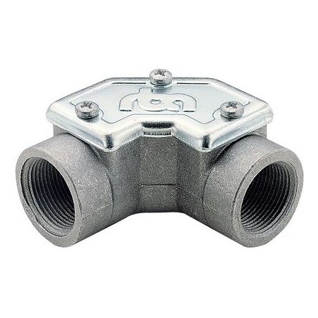 Curva metallica a 90° con filettatura ISO M25x1,5, tipo FF ad ispezione frontale. Questa curva metallica e' progettata per garantire un collegamento sicuro e resistente nelle installazioni elettriche, offrendo facilita' di ispezione e manutenzione grazie all’accesso frontale. Ideale per condotti e canalizzazioni che richiedono cambi di direzione a 90 gradi, con standard di filettatura ISO per un montaggio preciso e affidabile. Prodotto eccellente, realizzato con materiali di alta qualita' e pensato per durare nel tempo.