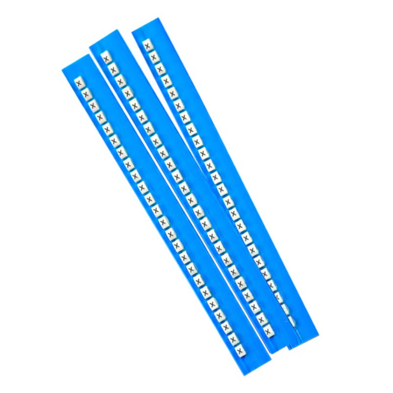 Stecche grandi Grafoplast da 3 mm con lettera “X” in stampa nera su fondo bianco, confezionate in blister da 10 stecche per un totale di 240 elementi. Ogni stecca è formata da 24 elementi identici premarcati, ideali per la siglatura e l’identificazione precisa dei cavi negli impianti elettrici. Prodotto eccellente, realizzato con materiali di alta qualita' e pensato per durare nel tempo.
