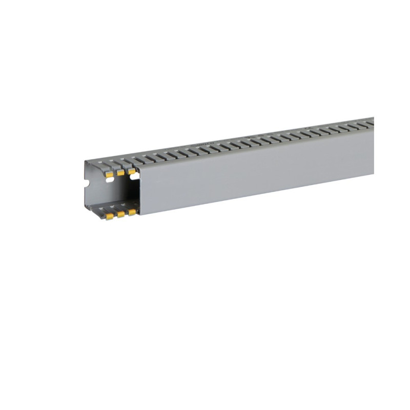 Canalette per cablaggio di quadri elettrici in PVC autoestinguente, con coestruso mordibo di colore giallo sulle lamelle, dimensioni: base 40 mm x altezza 40 mm, modulo 10 mm (feritoria 4 mm, lamella 6 mm) ideali per l’organizzazione e la protezione dei cavi all’interno di quadri elettrici. Conformi alla norma UL94 V0 e con resistenza al filo incandescente fino a 960 °C (Glow Wire Test EN 60695-2-11). Colore grigio RAL 7030, lunghezza 2 metri, complete di coperchio. Prodotto eccellente, realizzato con materiali di alta qualita' e pensato per durare nel tempo.