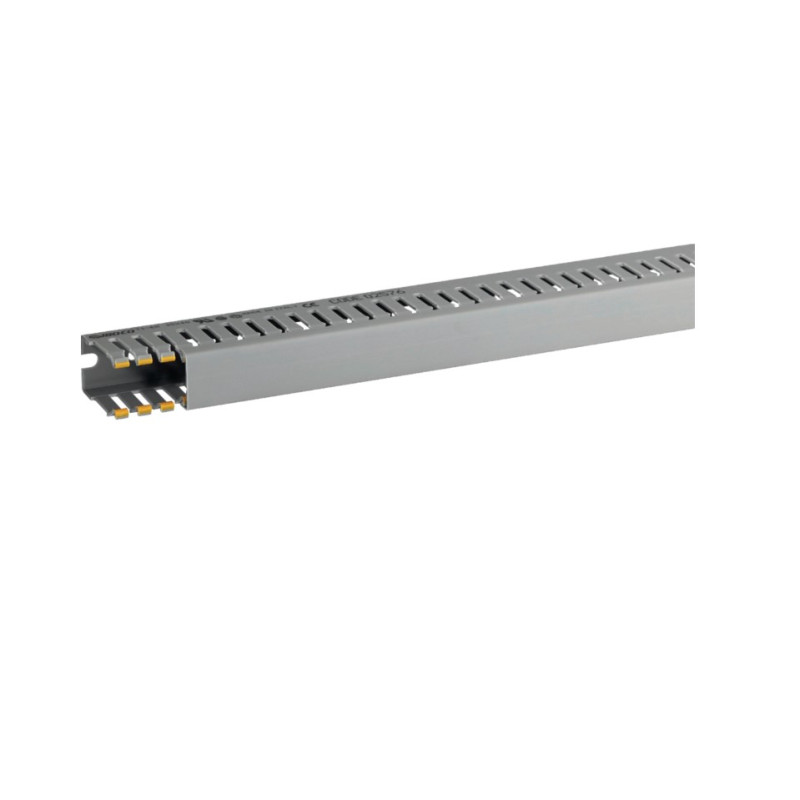 Canalette per cablaggio di quadri elettrici in PVC autoestinguente, con coestruso mordibo di colore giallo sulle lamelle, dimensioni: base 25 mm x altezza 40 mm, modulo 10 mm (feritoria 4 mm, lamella 6 mm) ideali per l’organizzazione e la protezione dei cavi all’interno di quadri elettrici. Conformi alla norma UL94 V0 e con resistenza al filo incandescente fino a 960 °C (Glow Wire Test EN 60695-2-11). Colore grigio RAL 7030, lunghezza 2 metri, complete di coperchio. Prodotto eccellente, realizzato con materiali di alta qualita' e pensato per durare nel tempo.