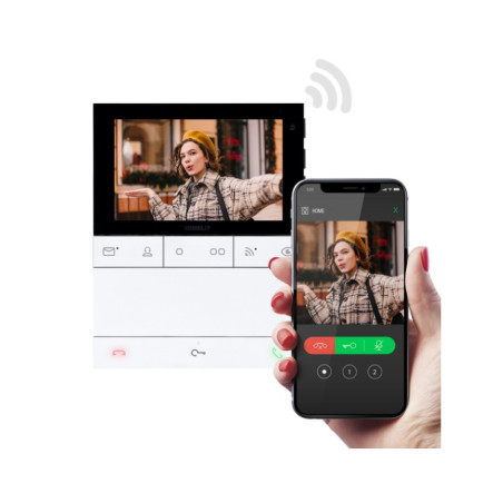 Videocitofono Wi-Fi a colori serie People per sistema Simplebus 2. Versione vivavoce con schermo da 5'' / 16:9. Tramite la app Comelit, scaricabile gratuitamente dagli store Google e Apple, è possibile gestire la chiamata e le principali funzioni del videocitofono direttamente da smartphone/tablet e dagli assistenti vocali Alexa/Ecoshow/Google Assistant, sia da remoto che da locale. Grazie alla procedura guidata, l’associazione tra il videocitofono e la app Comelit è semplice, veloce ed intuitiva. Consente inoltre di abilitare la funzione di “Riconoscimento facciale” direttamente dalla app, per inviare in automatico, a seguito del riconoscimento di un soggetto, il comando di apriporta, azionare un attuatore per il comando di una luce o di un'apertura supplementare e ricevere una notifica quando una persona conosciuta effettua una chiamata. È provvisto di segreteria video che permette la registrazione di 8 filmati. È fornito con staffa di fissaggio a parete in metallo per un ancoraggio stabile e forte e di morsetto di derivazione di linea. È dotato di 3 pulsanti retroilluminati per facilitarne l'utilizzo: colore verde per la funzione ''presa fonica'', colore rosso per la funzione ''fine comunicazione'' e colore bianco per la funzione ''elettroserratura'' e di 6 pulsanti programmabili e già configurati per le principali funzioni. Sul lato destro del videocitofono sono invece presenti i pulsanti per attivare la modalità Silenziosa e per accedere al menu. Di serie è dotato di chiamata fuoriporta programmabile anche per altre funzioni e morsetti per la ripetizione della chiamata. Il videocitofono è programmabile, anche da spento, da smartphone grazie alla app MyComelit scaricabile gratuitamente. Dimensioni (L x H x P): 135 x 170 x 23 mm. Prodotto eccellente, realizzato con materiali di alta qualita' e pensato per durare nel tempo.