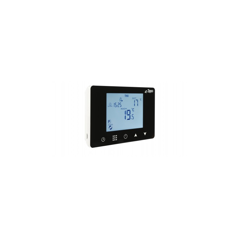 Cronotermostato elettronico di facile utilizzo, con ampio display LCD retroilluminato e tasti di comando touch. Alimentato a batterie. Programmazione settimanale su 6 fasce orarie per giorno e su due livelli di temperatura : Comfort e ridotto . Funzione Antigelo. Dotato di display retroilluminato per la visualizzazione della temperatura ambiente rilevata e dell’ora corrente . Modalità di funzionamento in automatico, manuale, manuale temporaneo, vacanza e spento con protezione Antigelo.