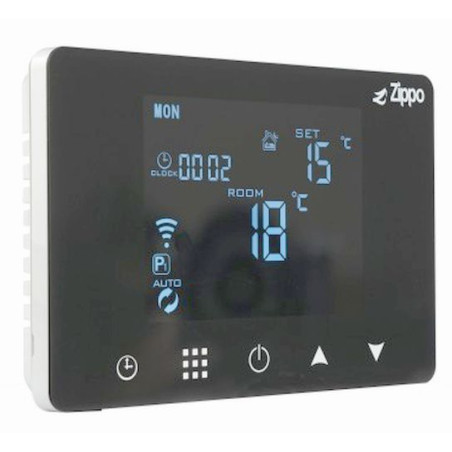 Cronotermostato Wi-Fi elettronico di facile utilizzo, con ampio display LCD retroilluminato a led bianchi e tasti di comando touch. Permette di programmare la temperatura in maniera semplice e veloce, controllando e modificando le impostazioni in qualsiasi momento e luogo con smartphone o tablet. Tramite App, si possono: