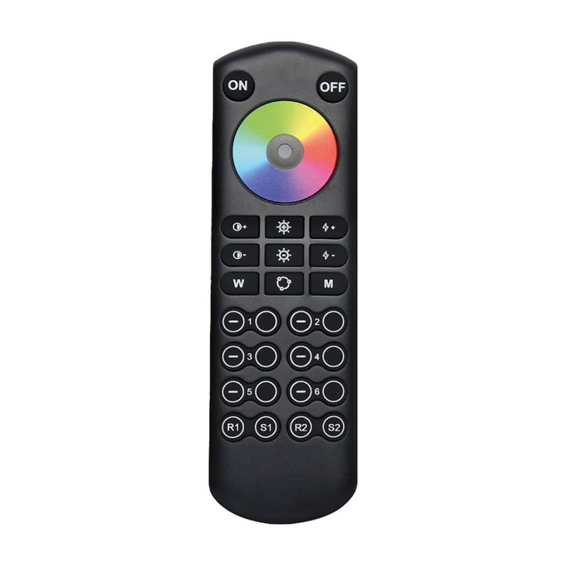 Il radiocomando touch RGB+CCT a 6 zone permette il controllo avanzato dell'illuminazione con pulsanti a sfioramento, offrendo la regolazione di colore RGB (intensita', velocita' e saturazione) e bianco (temperatura colore e intensita'). Include modalita' preimpostate e la possibilita' di memorizzare 2 combinazioni preferite. Alimentato a batterie AAA (non incluse), e' lo strumento ideale per gestire in modo intuitivo scenari luminosi personalizzati in ambienti residenziali o commerciali. Prodotto eccellente, realizzato con materiali di alta qualita' e pensato per durare nel tempo.