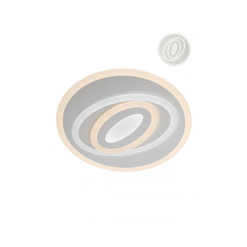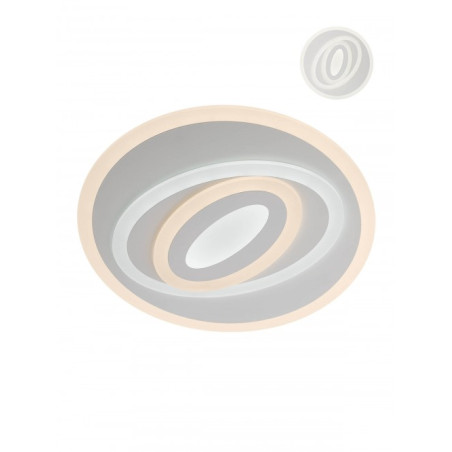 Plafoniera da interno dotata di LED SMD, con struttura in metallo verniciato bianco opaco e diffusori in acrilico satinato. Include un telecomando (con 2 batterie AAA) che permette di accendere e spegnere la luce, selezionare 3 programmi operativi, regolare l’intensita' luminosa, variare la temperatura colore dal bianco caldo al bianco freddo, impostare un timer e attivare la modalita' luce notturna. La plafoniera monta LED da 67W, con 650 LED da 0,10W ciascuno di tipo 2835 SMD; emette 6048 lumen effettivi e 16.900 lumen totali, con temperatura colore regolabile tra 3000K, 4000K e 6000K. La dimmerazione e' gestita tramite telecomando. Prodotto eccellente, realizzato con materiali di alta qualita' e pensato per durare nel tempo.