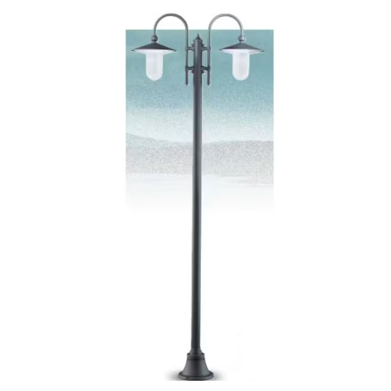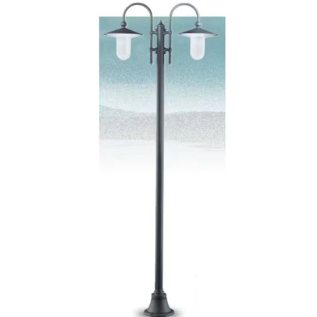 Il lampione a due luci Nobile Italia NOB2069/09/00/NA/TR e' un apparecchio da esterno dallo stile classico e decorativo, ideale per l’illuminazione di giardini, viali e spazi pubblici. Realizzato in pressofusione di alluminio verniciato, e' resistente agli agenti atmosferici e progettato per durare nel tempo. Il diffusore in policarbonato trasparente (o in versione opale nella configurazione standard) garantisce una distribuzione uniforme della luce, offrendo al contempo protezione alle sorgenti luminose. Il lampione e' dotato di due portalampade E27, compatibili con lampadine fino a 23W a basso consumo o fino a 60W tradizionali, permettendo un’illuminazione efficace e personalizzabile. La struttura con piattello superiore completa il design classico, rendendolo una scelta elegante e funzionale per contesti residenziali o commerciali. Prodotto eccellente, realizzato con materiali di alta qualita' e pensato per durare nel tempo.