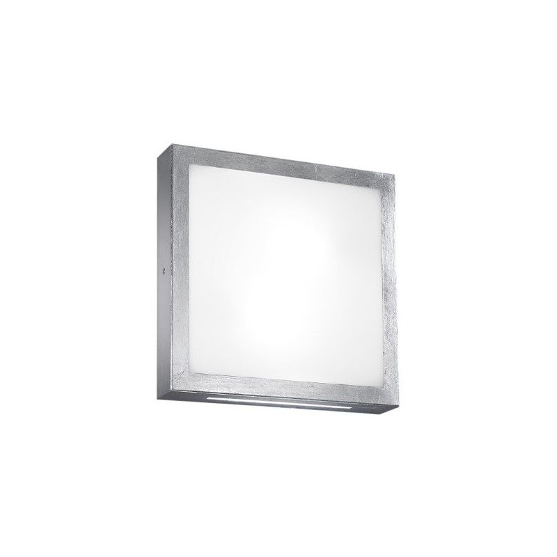 La 1645-30-ARG e' una plafoniera da soffitto e parete dal design elegante e funzionale. Caratterizzata da una struttura quadrata in metallo verniciato con finitura in foglia argento, e' disponibile anche nelle versioni in foglia oro e nichel opaco. I tagli laterali praticati su due lati permettono una particolare diffusione della luce, creando un effetto scenografico sulla superficie di installazione. Il diffusore in vetro satinato assicura una luce uniforme e confortevole. L’attacco E14 e' compatibile con lampadine LED, garantendo efficienza e risparmio energetico. Disponibile in diverse dimensioni e potenze, e' adatta a vari contesti abitativi e professionali. Prodotto eccellente, realizzato con materiali di alta qualita' e pensato per durare nel tempo.