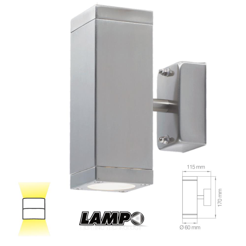 L'applique quadrata Lampo UPDOWN/SQ/2 e' una soluzione elegante e funzionale per l’illuminazione esterna e interna, grazie alla sua finitura in acciaio inox 304 resistente e al grado di protezione IP44 che la rende adatta a condizioni ambientali umide. Con due punti luce direzionati verso l’alto e verso il basso (biemissione), monta lampade con attacco GU10 230V, facilmente sostituibili dall’utente per una manutenzione semplice. Il design moderno e minimalista e' perfetto per valorizzare facciate, ingressi, corridoi e giardini con un’illuminazione efficace e raffinata. Prodotto eccellente, realizzato con materiali di alta qualita' e pensato per durare nel tempo.