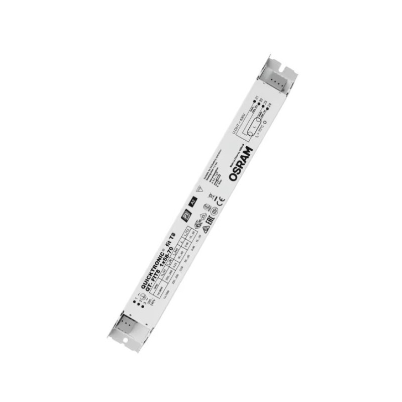L’alimentatore elettronico LEDVANCE LDVQTFIT81X5870 QT-FIT8 1X58-70/220-240 UNV1 OSRAM e' progettato per lampade fluorescenti T5 da 26 mm di diametro. Supporta una tensione di alimentazione tra 220 e 240 V (198-264 V in linea) e frequenze di 50 o 60 Hz, garantendo un’accensione ottimale con preriscaldamento del filamento. Offre un’elevata efficienza energetica con indice EEI A2 e spegne automaticamente le lampade difettose al termine della loro vita (funzione EoL T.2). Conforme alle normative EN 60929 e EN 61347-2-3, assicura lunga durata e resistenza a cicli frequenti di accensione e spegnimento, oltre a una riaccensione automatica dopo la sostituzione della lampada. e' adatto anche per sistemi con sensori di movimento e per illuminazione di emergenza, con certificazione VDE/VDE EMC e tecnologia cut-off per massima efficienza. Ideale per uffici open space, corridoi, ripostigli, edifici pubblici e strisce luminose. Prodotto eccellente, realizzato con materiali di alta qualita' e pensato per durare nel tempo.
