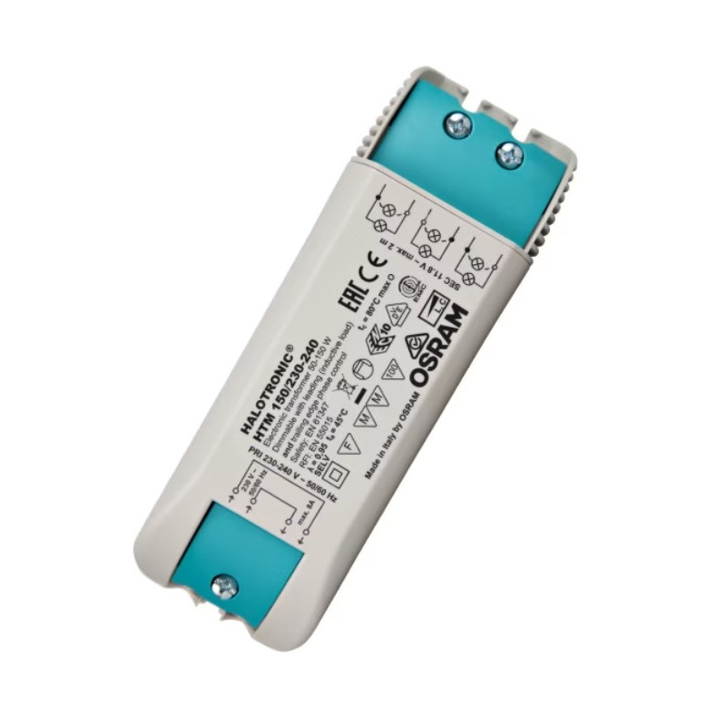Il trasformatore elettronico LEDVANCE Halotronic Compact HTM HTN 150/230-240 UNV1 di Osram e' progettato per lampade alogene a bassissima tensione con alta efficienza energetica superiore al 91%, conforme ai regolamenti UE. Supporta frequenze di linea da 50 a 60 Hz e offre protezioni elettroniche contro cortocircuiti, sovraccarichi e sovratemperatura, garantendo una lunga durata delle lampade. e' dimmerabile con dimmer a taglio di fase IGBT (per HTM) e TRIAC, dispone di morsetti serrafilo compatibili con diversi cavi ed e' ideale per installazioni in spazi ridotti grazie al design compatto. Adatto per illuminazione d’effetto, di accento e ambientale in soggiorni, ristoranti, negozi, sale conferenze e per apparecchi da incasso o su superficie, questo trasformatore assicura un funzionamento stabile e silenzioso con conformita' a normative EMC e sicurezza. Prodotto eccellente, realizzato con materiali di alta qualita' e pensato per durare nel tempo.