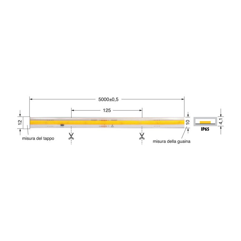 Striscia LED flessibile da 17W/m a luce bianca fredda (CW), alimentazione diretta a 220V, lunghezza 5 metri con grado di protezione IP66, perfetta per installazioni professionali in ambienti non accessibili al pubblico. Realizzata su circuito bianco con adesivo posteriore per un montaggio rapido su profili in alluminio o superfici dissipative, e' ideale per applicazioni decorative, architettoniche o commerciali grazie alla sua versatilita'. La bobina da 5m contiene 1480 LED tagliabili ogni 12,5cm, consentendo una personalizzazione ottimale, e supporta connessioni in serie fino a 50m. Il prodotto include un kit di chiusura 18/67919-00 per un'installazione completa. Attenzione: la protezione IP65 e' garantita solo per la striscia LED nuda; in caso di montaggio su profili non stagni o in ambienti umidi, e' consigliabile aggiungere ulteriori protezioni per evitare danni prematuri dovuti all'umidita' o ristagni d'acqua. Prodotto eccellente, realizzato con materiali di alta qualita' e pensato per durare nel tempo.