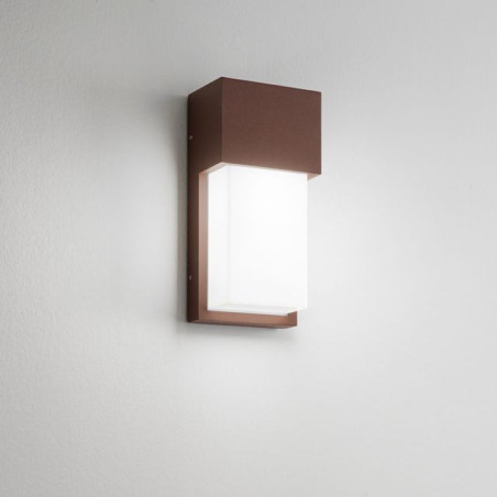 Lampada da parete in alluminio, montaggio in aderenza a parete tramite supporto in metallo, corten sabbiato. Attacco E27 max 20W led Lampada non integrata Protezione IP54 Prodotto eccellente, realizzato con materiali di alta qualita' e pensato per durare nel tempo.