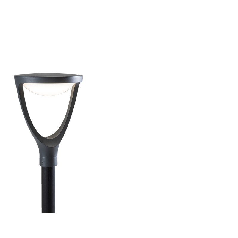 L’apparecchio è completo di adattatore per pali Ø60 mm e di guarnizioni siliconiche che assicurano un’efficace protezione contro la penetrazione di acqua e polvere. Nella confezione sono inclusi anche una pratica chiave esagonale per il serraggio e le istruzioni per il corretto montaggio.