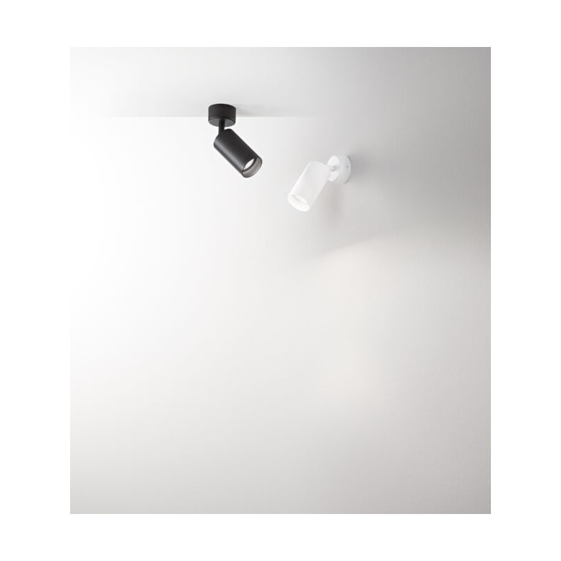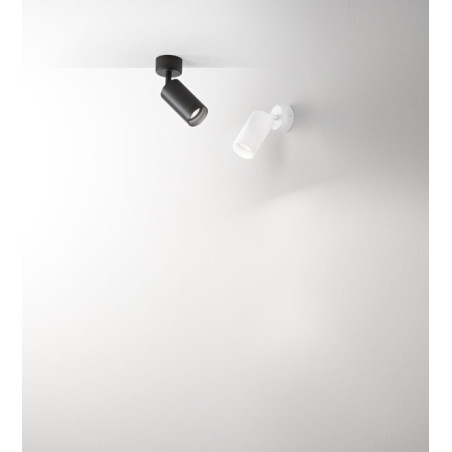 Lampada orientabile da parete e soffitto realizzata in alluminio, progettata per installazione in aderenza a parete o soffitto.