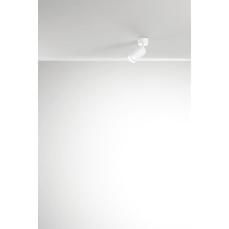 Lampada orientabile da parete e soffitto realizzata in alluminio, progettata per installazione in aderenza a parete o soffitto.