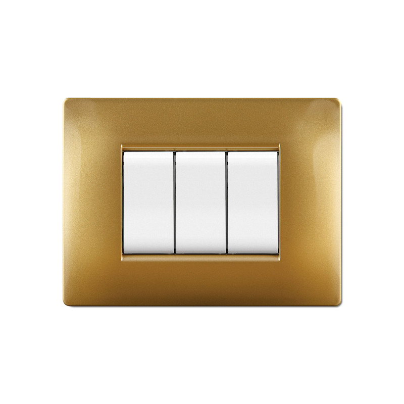 La placca 3 moduli MYLIFE Q® di Elettrocanali si distingue per il suo design contemporaneo, con linee fluide e una rapida installazione senza bisogno di adattatori, abbinandosi perfettamente agli apparecchi MYLIFE®. Disponibile in 23 colori e 6 finiture diverse, e' ideale per valorizzare qualsiasi stile d'interno. Prodotto eccellente, realizzato con materiali di alta qualita' e pensato per durare nel tempo.