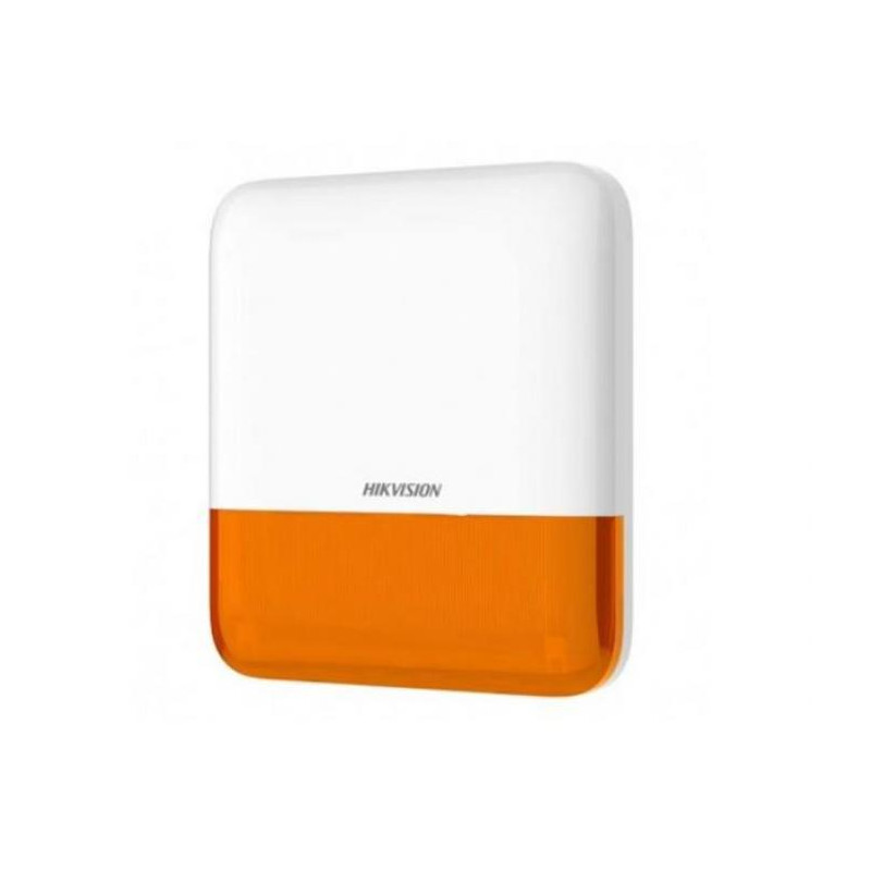 La sirena esterna Hikvision modello DS-PS1-E-WE(O-STD)/ORANGE e' un dispositivo senza fili con comunicazione wireless bidirezionale a 868 MHz, che utilizza crittografia AES-128 per garantire la sicurezza delle trasmissioni. Il pannello anteriore e posteriore e' a prova di manomissione, aumentando la protezione contro tentativi di sabotaggio.