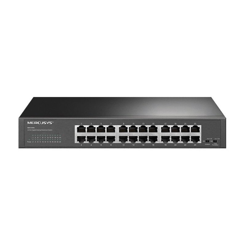 Switch Desktop/Rackmount 24 porte Gigabit Porte Full Gigabit: 24 porte RJ45 10/100/1000 Mbps Auto-Negotiation con supporto Auto-MDI/MDIX Plug and Play: nessuna configurazione richiesta Isolation Mode: La modalità di isolamento consente la separazione del traffico client con un clic per una maggiore sicurezza e prestazioni Loop Prevention: Monitora e risolvi i problemi relativi ai loop all'interno della struttura di rete per prevenire le interruzioni causate dai loop Case in metallo durevole: Consente un'efficiente dissipazione del calore e una lunga durata della rete Prodotto eccellente, realizzato con materiali di alta qualita' e pensato per durare nel tempo.