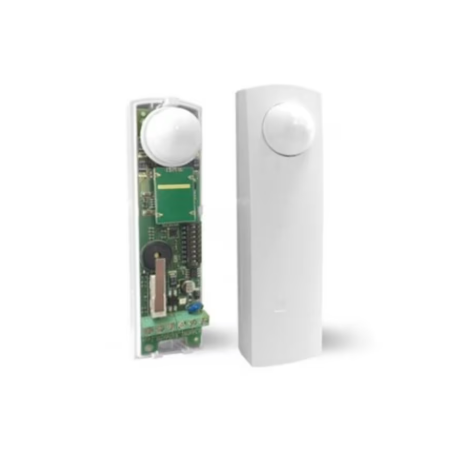 La sezione infrarossi è costituita da un PIR a due elementi, mentre la sezione microonde utilizza una cavità planare a 10 GHz, garantendo una rilevazione precisa e affidabile. Il sistema di acquisizione e elaborazione numerica assicura una copertura ottimale con riduzione dei falsi allarmi. La portata del sensore è regolabile da 2 a 3,5 metri, offrendo la massima flessibilità per l’installazione. Il dispositivo è dotato di protezione antiapertura, LED per il walk test e può essere installato in due modalità: dall’alto verso il basso oppure su un lato. La direzione di allarme è selezionabile e temporizzabile, con logica di funzionamento AND. Caratteristiche principali